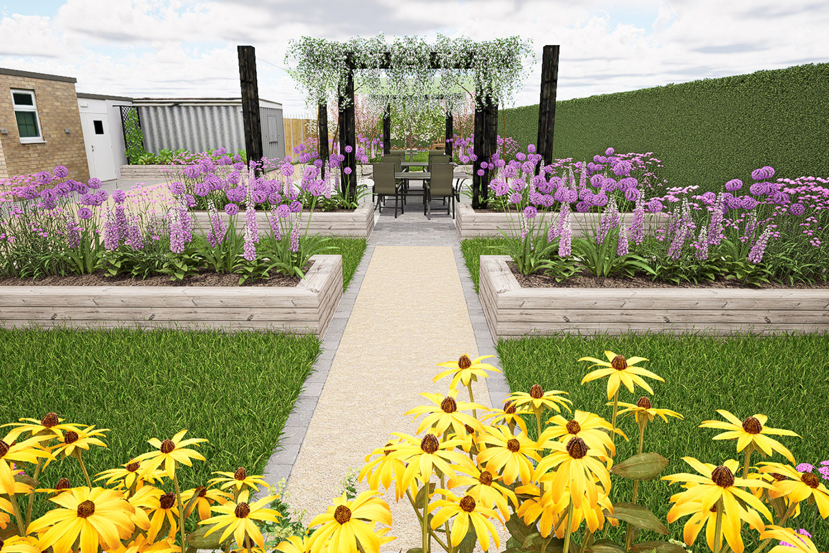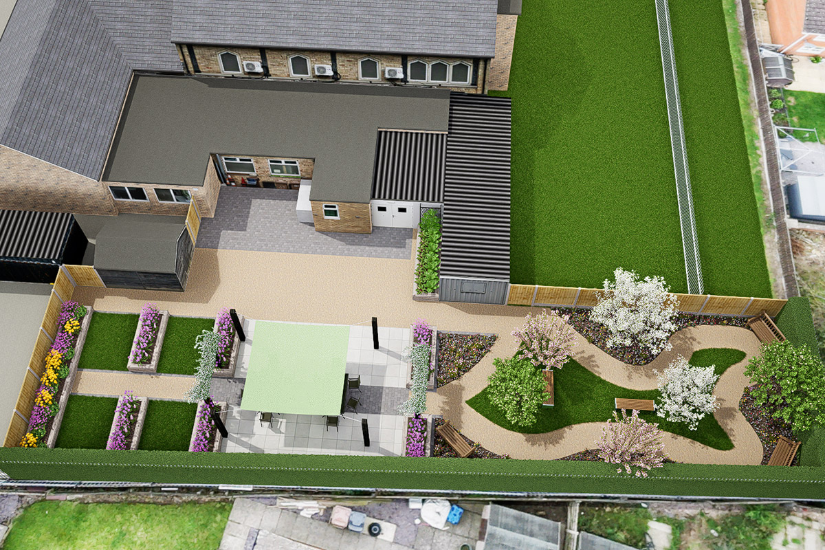 Pete had the vision for this community garden, which would offer a combination of benefits for residents and local families. Following our garden design and installation services, what was once an unused patch of grass has become a multi-use community garden complete with permeable paving, raised planters, and turfed areas.