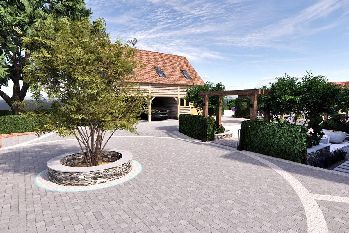 Following this, our team created a stunning circular driveway area with an array of paddle stones and block paving further into the property. Laid at an intricate 45-degree angle, the resulting driveway is quite spectacular to visitors.