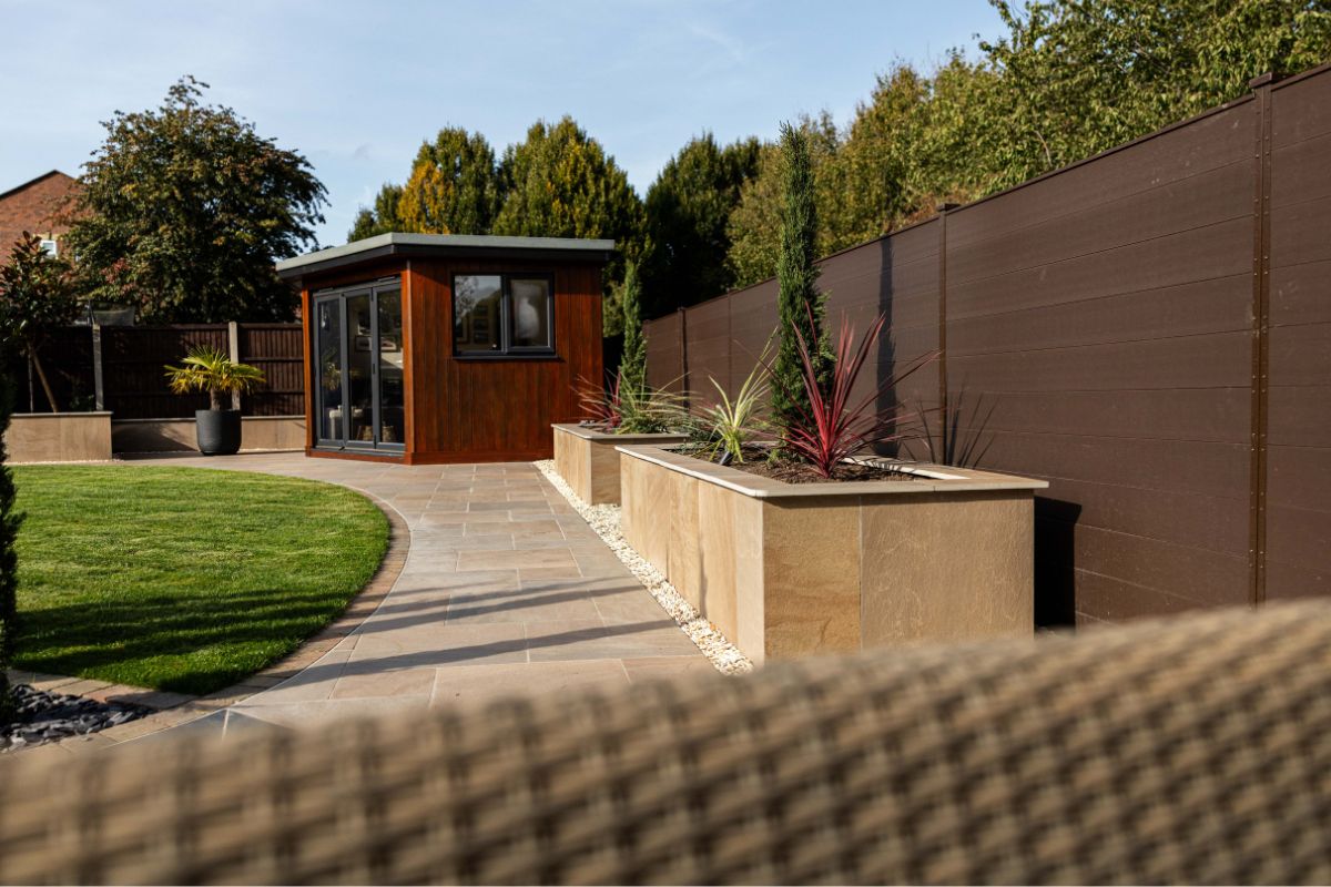 At the rear of the property, we installed modern composite fencing, providing a low-maintenance, long-lasting boundary solution. A fresh area of high-quality turf was laid to create a green, family-friendly lawn space that balances the paved areas with natural softness.