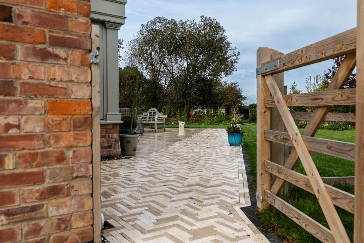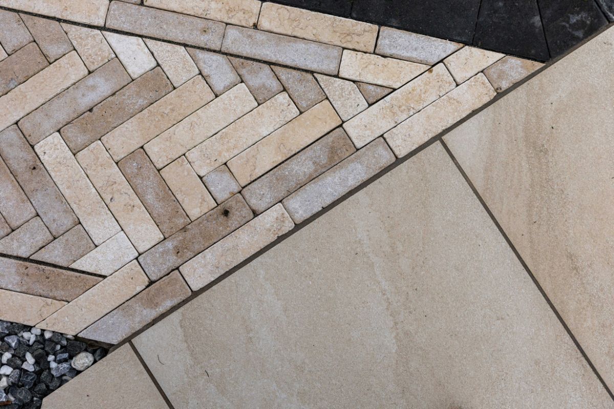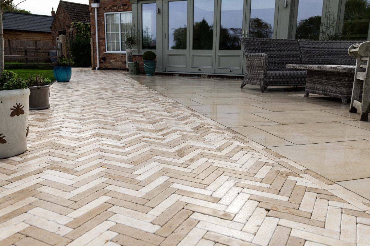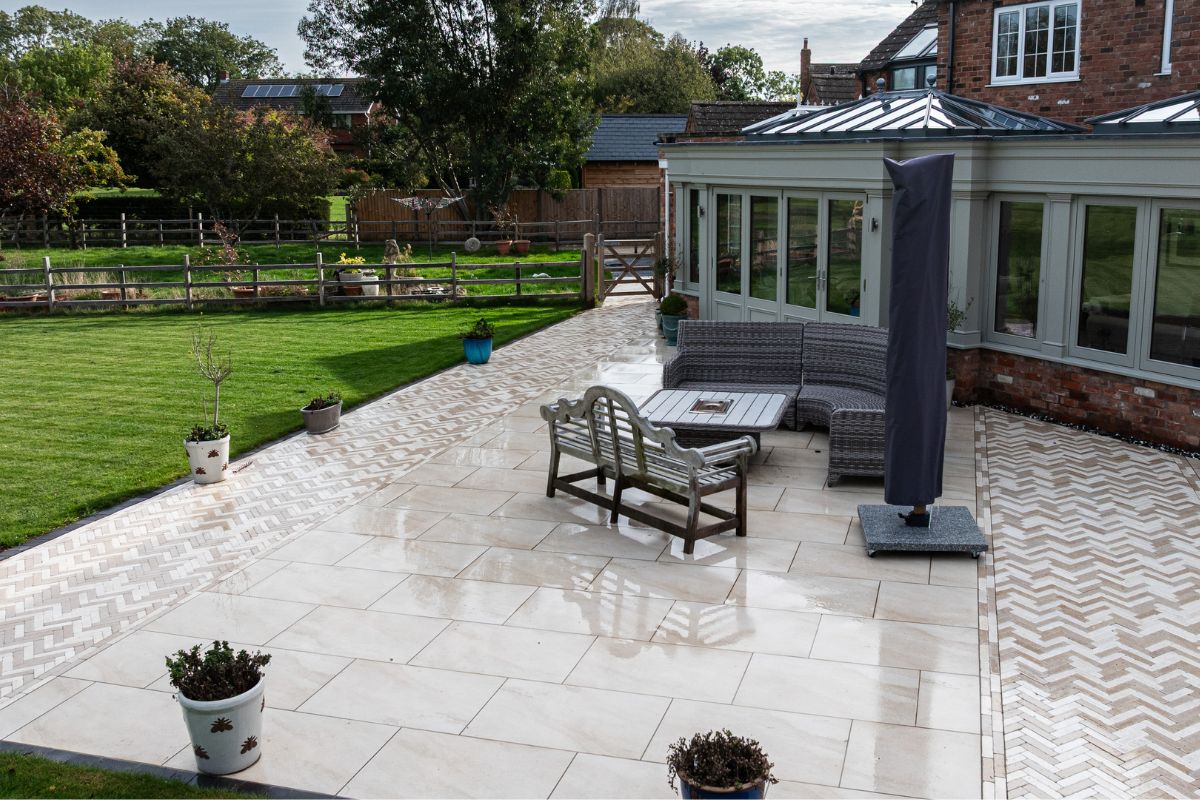 - Herringbone pattern detailing, giving the patio a striking, elegant character